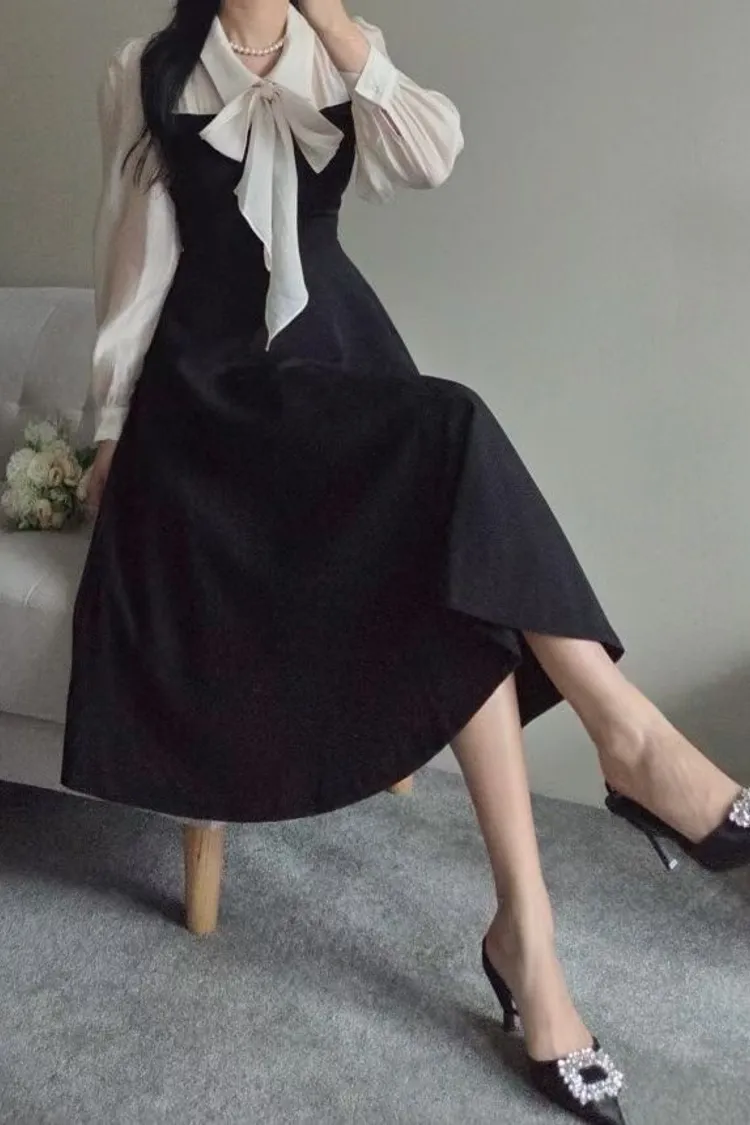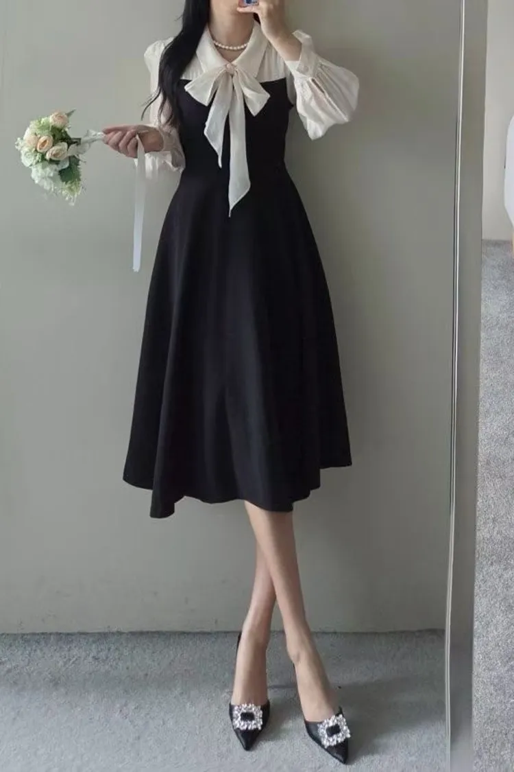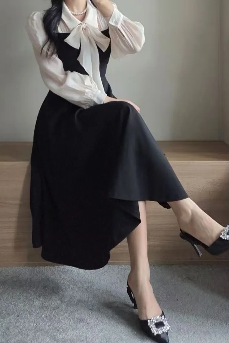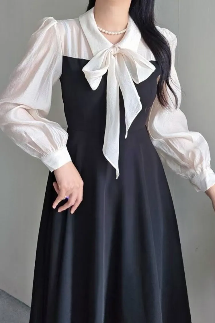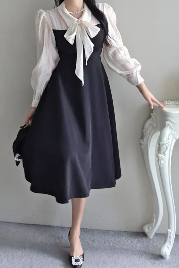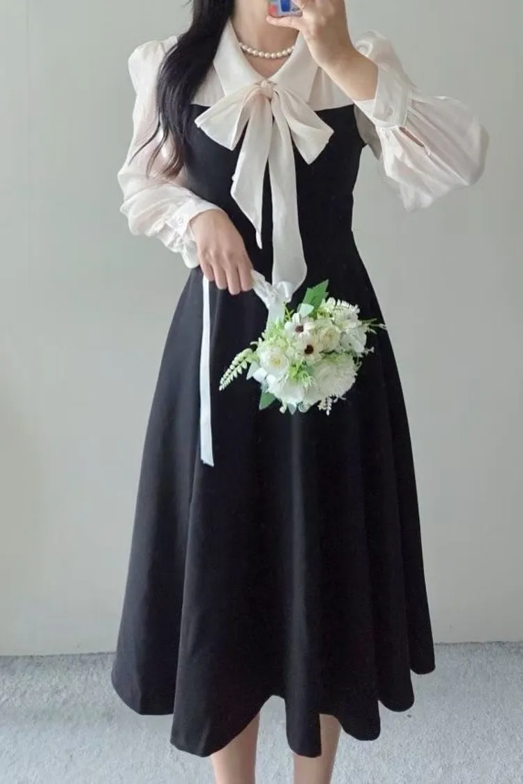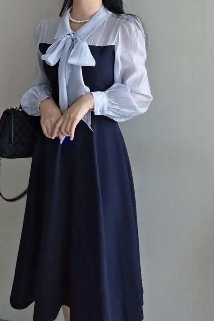 氣質蝴蝶結綁帶長版洋裝